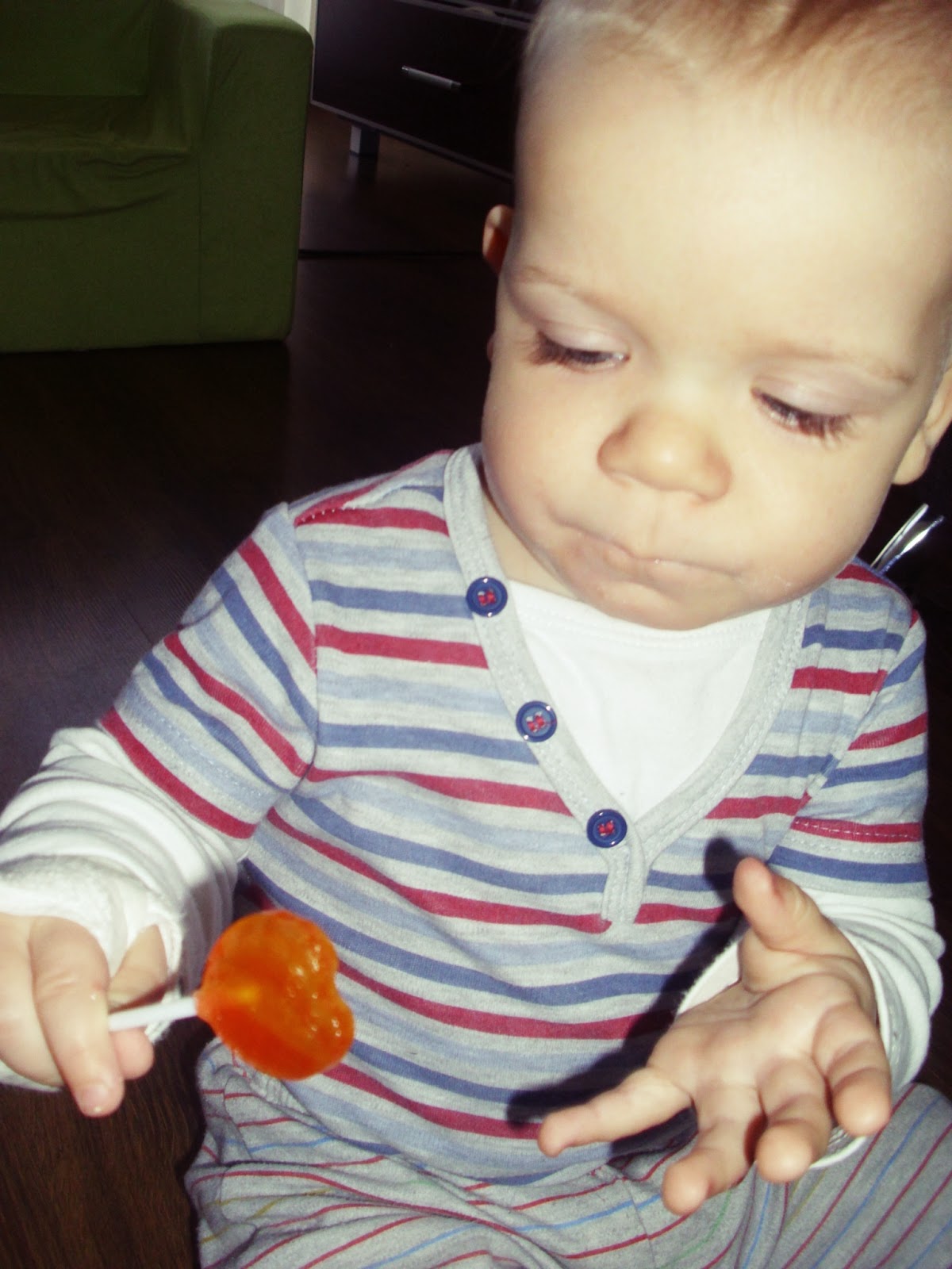 My z witamin C używaliśmy Cebion i Juvit C, zawsze dodajemy do mleka nigdy prosto do buzi ;) Dzięki czemu smaku w ogóle nie czuć. A lizaki to jak dla mnie samo złoo ;) Martynka ma ponad dwa latka i jeszcze nigdy żadnego w dzióbku nie miała i mieć nie będzie jak najdłużej się da. Z własnej woli nigdy jej lizaka nie dam ;) Lizaki najbardziej ze wszystkich słodyczy oblepiają ząbki cukrem, bo mają z ząbkami długotrwały kontakt. To już lepiej witaminowe żelki dawać jeśli coś z tego gatunku słodyczy trzeba ;))