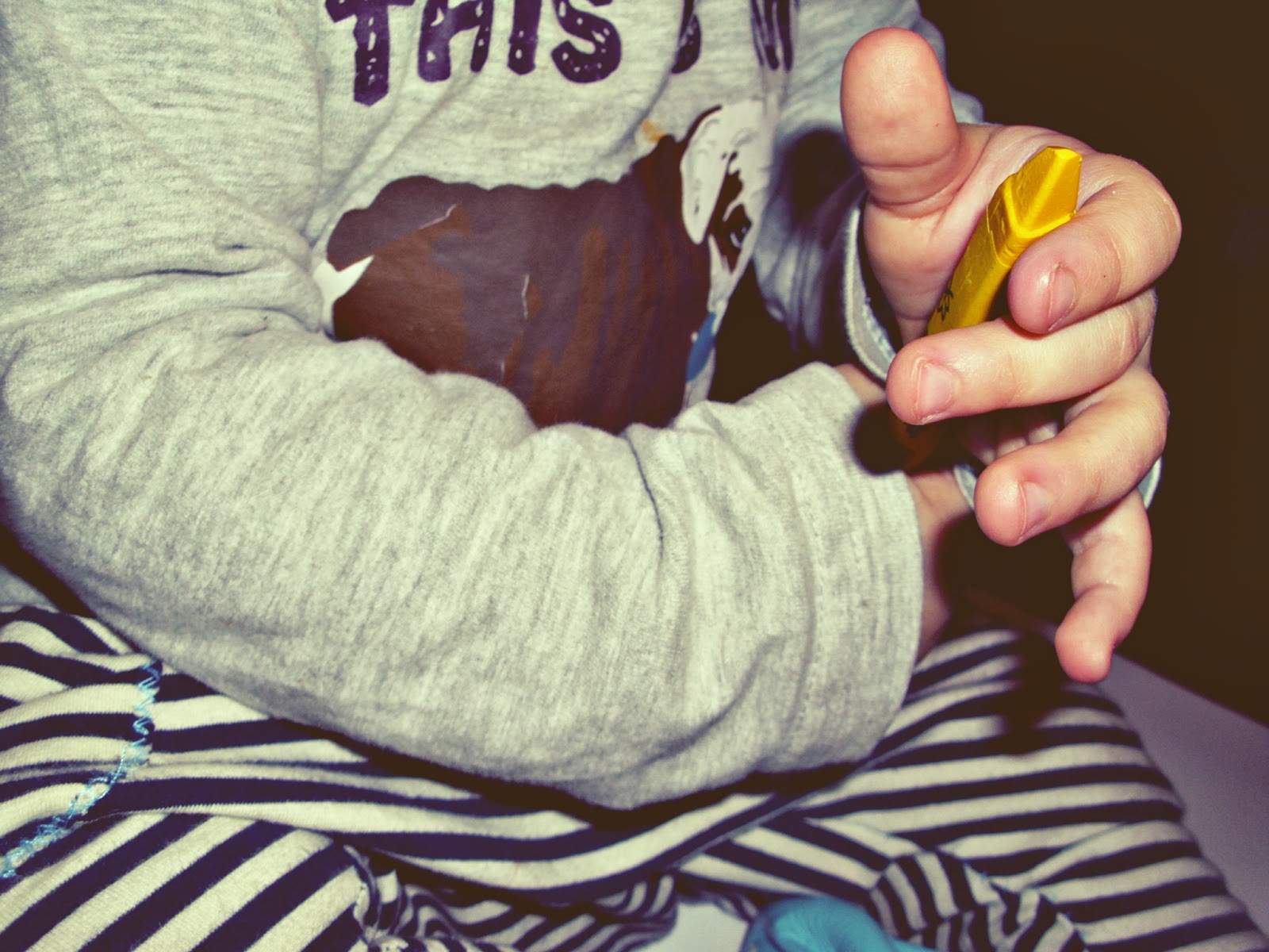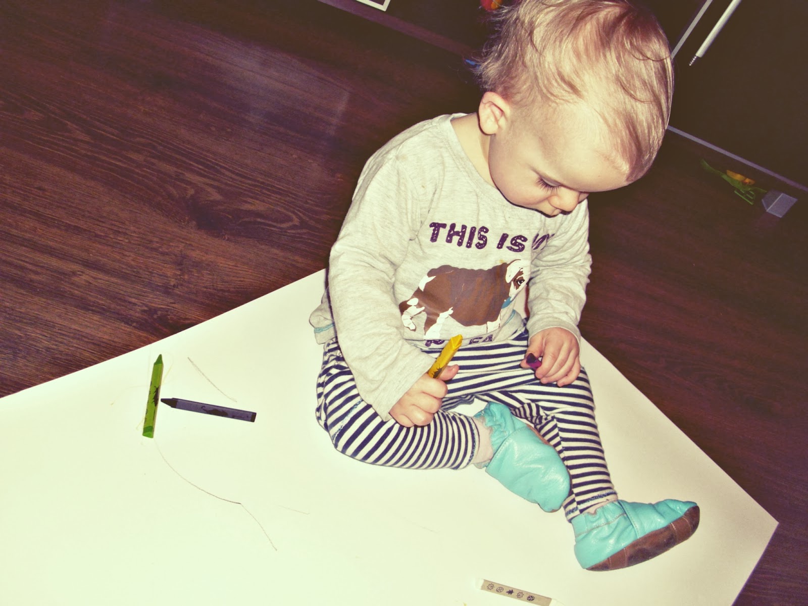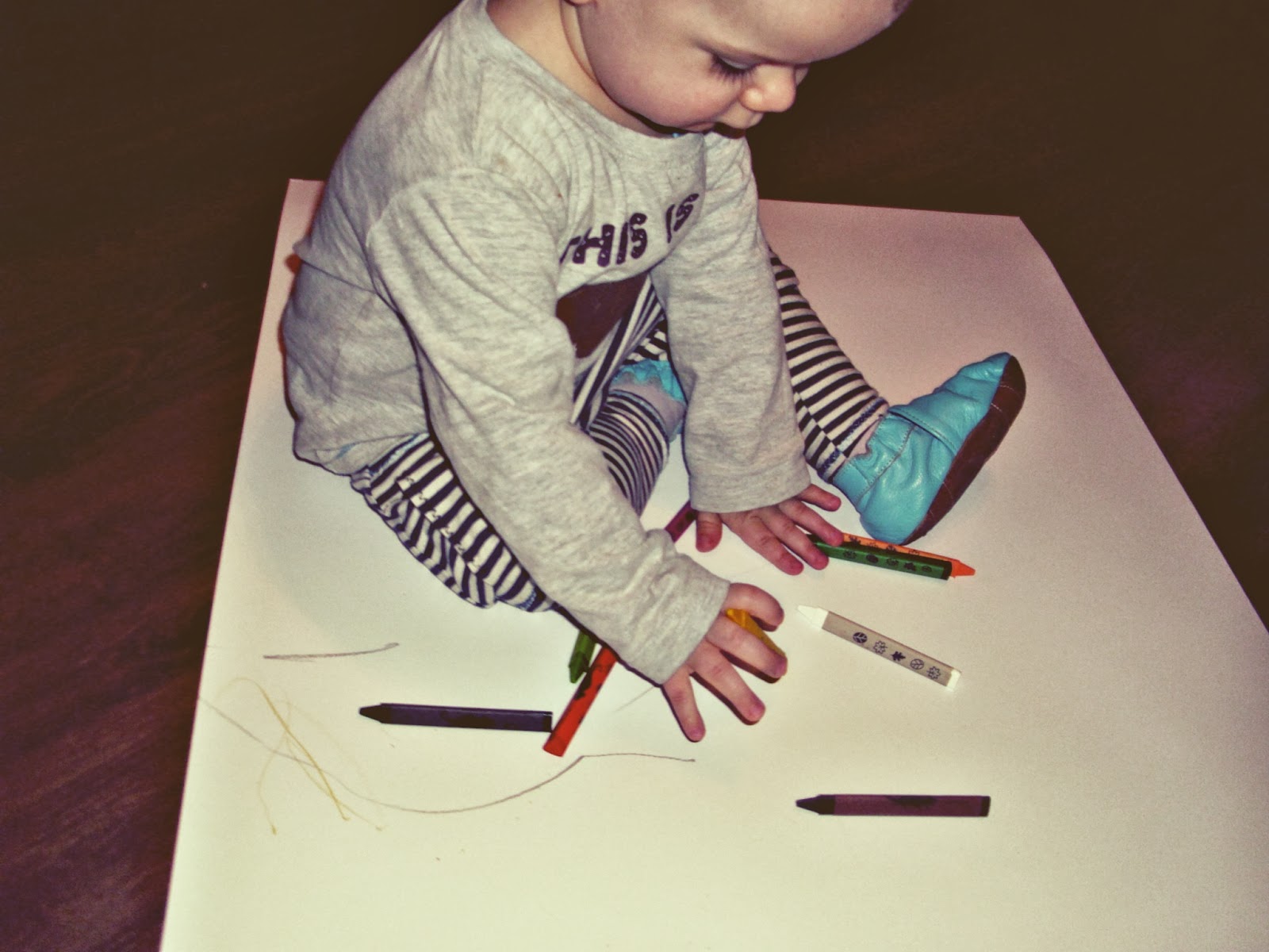 bardzo pozytywny ! Kubuś chętnie rysował ,chodził po brystolu ,chwytał różne kredki i mazał nimi po kartce .zabawa wyraźnie mu się podobała ,popisaliśmy wspólnie całą jedną stronę brystolu ..a dodatkowo -druga strona zostaje nam na jutrzejsze rysowanie ,kredki można schować ,z pewnością przydadzą się jeszcze nie raz .