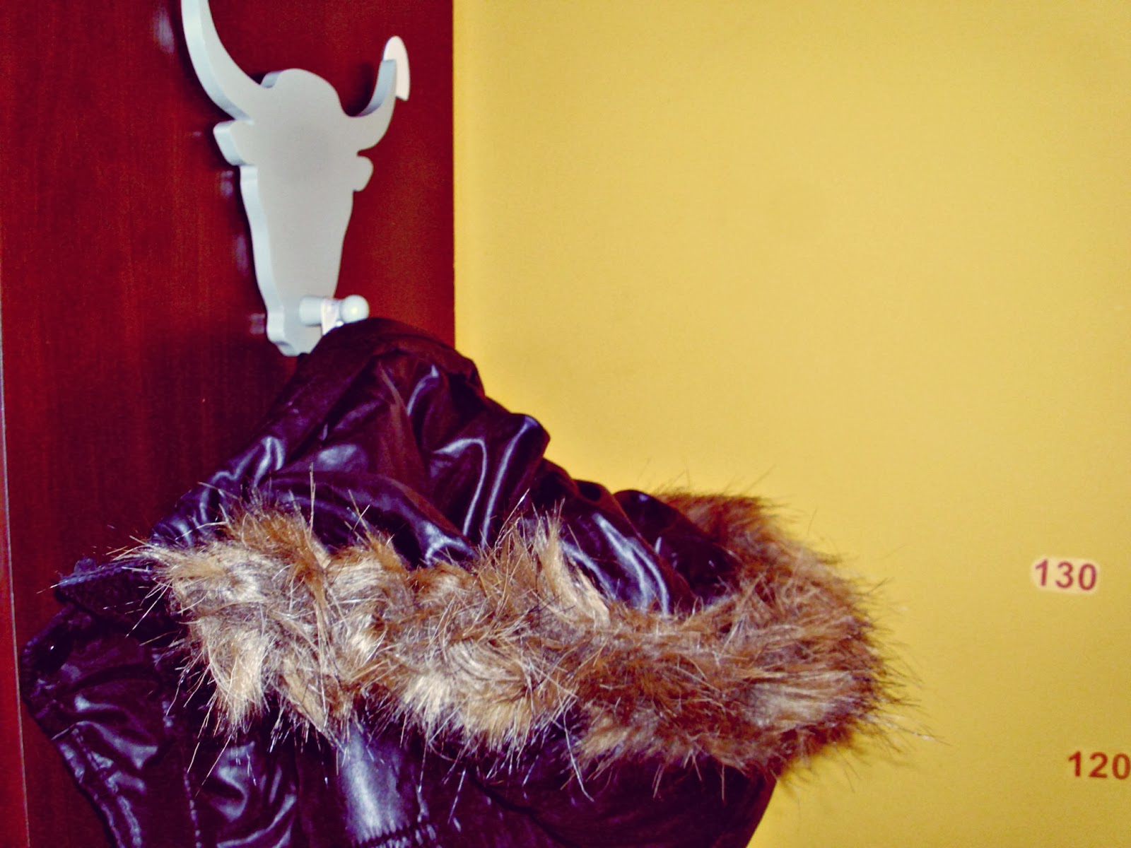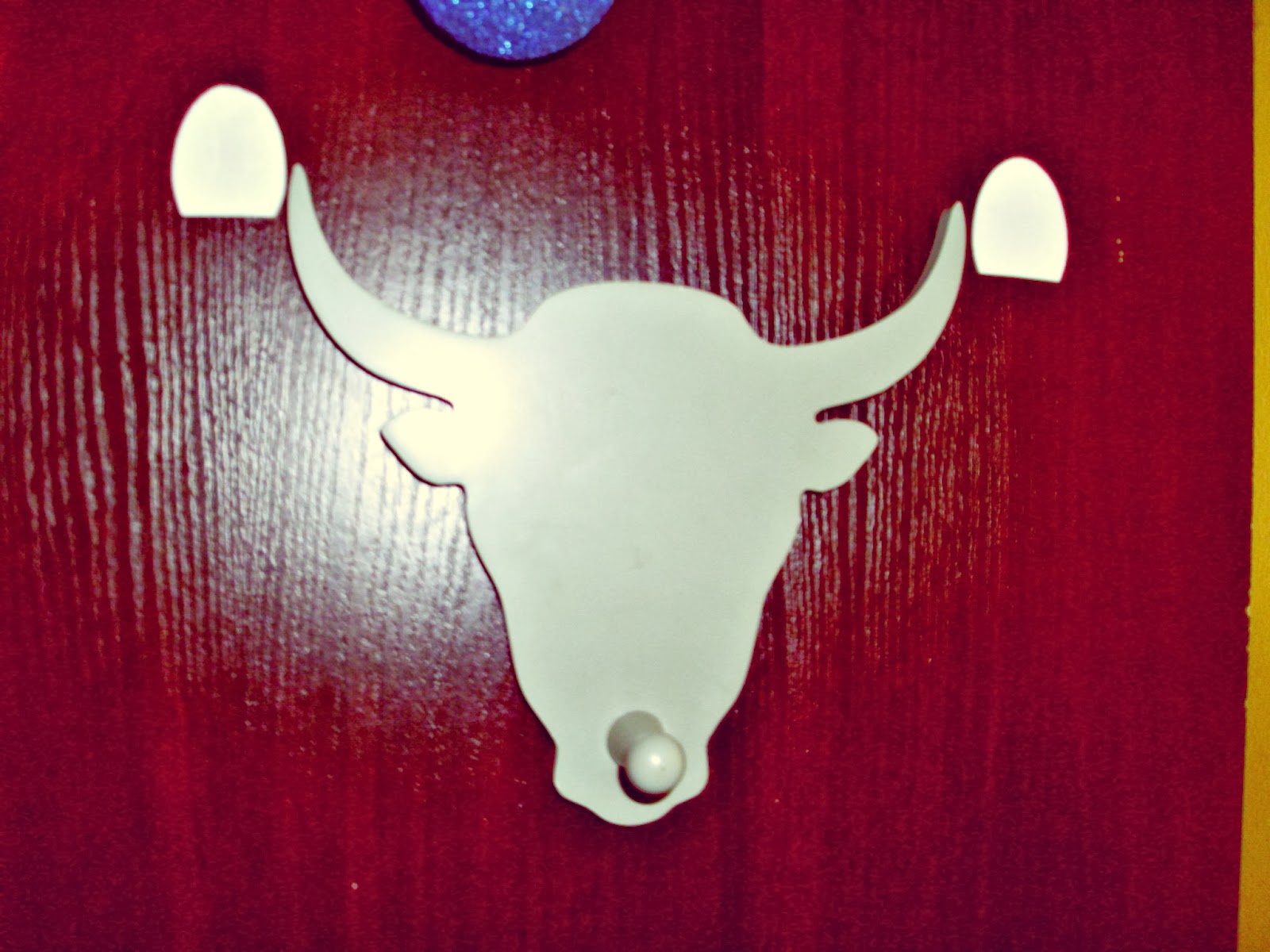 Naszego fajnego byczka planowałam zamontować dokładnie w tym samym miejscu. Zrobiłam to, wisi idealnie. Ani drgnie pod Kuby kurtką. Wykonany jest naprawdę ze świetnej jakości drewna. Gładki, żadnych ostrych wypukleń, o które można by rozciąć rękę. Jest idealny i świetnie współgra z żółtymi ścianami w naszym pokoju.