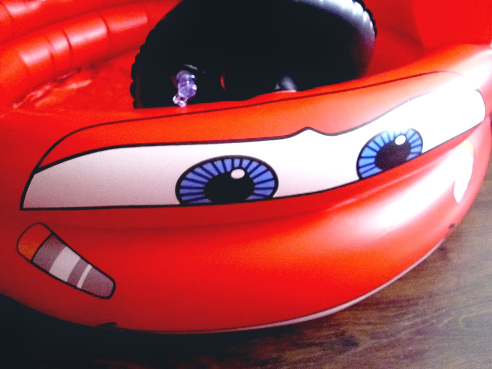 Dużą zaletą tego autka jest fakt, że po spuszczeniu powietrza zajmuje naprawdę niewiele miejsca, a jego nadmuchanie to dosłownie kilka krótkich minut. Wbrew pozorom wcale nie jest taki mały- oboje z Kubusiem się z nim mieścimy.