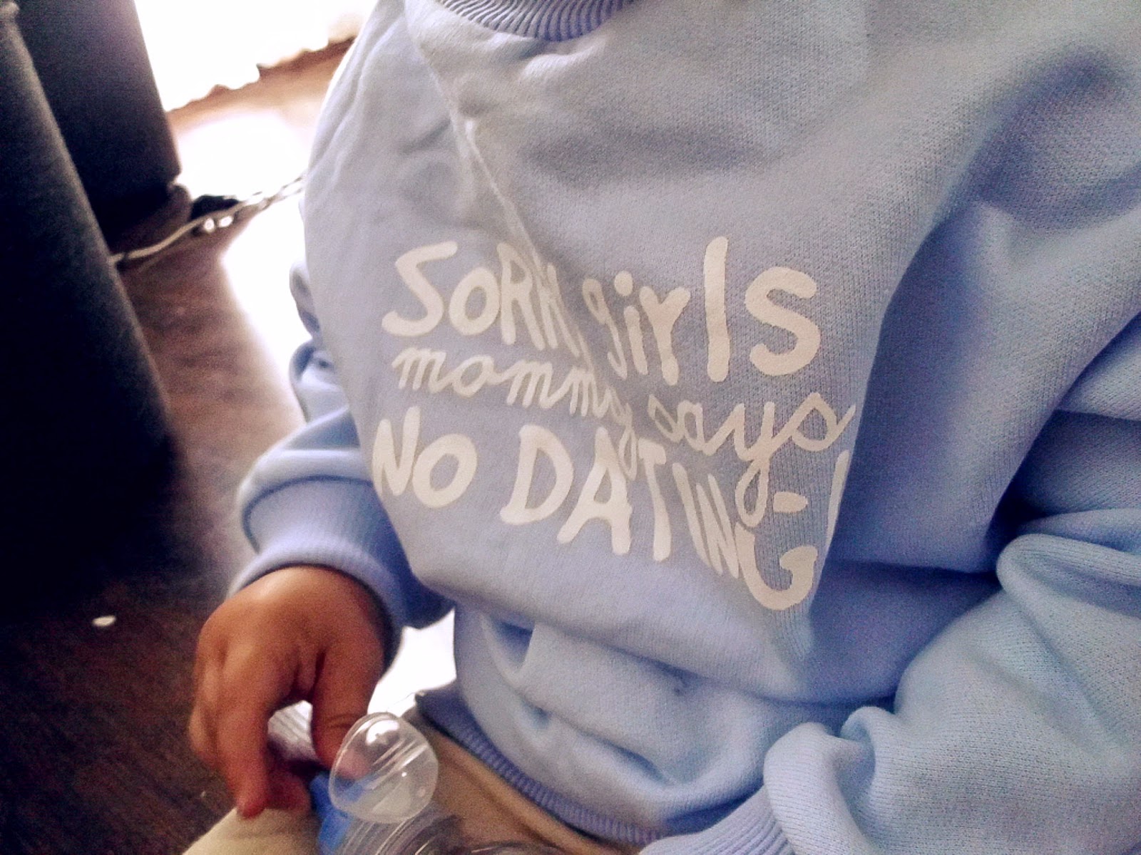 Jedna z moich ulubionych bluz Kuby. Nieważne, że jeszcze odrobinę za duża, jesienią- będzie idealna. Nadruk? Wymowny, idealny. Lubię tego typu hasła na dziecięcych ubraniach. Świetny kolor. Tak, zakochałam się zarówno w samej bluzie i moim Bubim w niej.