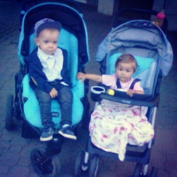 Minionego dnia spotkaliśmy się także z Gosią i jej rodziną. Też była dzidzia, tylko nieco starsza, bo Karinka skończyła już roczek. Ze spotkania maluchy mają wspólne zdjęcie, które możecie zobaczyć wyżej. Kubie mała również się spodobała. Będzie z tego romans w przyszłości, zobaczcie! :)