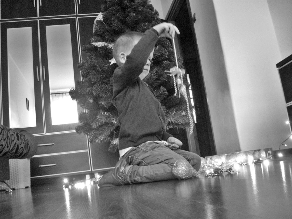 Co wybrałam dla niego na Święta? Jak wspomniałam, zależało mi na tym, aby i mój syn poczuł się w Święta wyjątkowo. Niejednokrotnie, kiedy mój tata zakładał białą koszulę, Kuba pytał, kiedy i on taką założy. Przy tym wszystkim nie chciałam wciskać Kuby w czarne, eleganckie spodnie – tym bardziej, że jego nogi szybko rosną – byłaby to inwestycja dosłownie na chwilę.