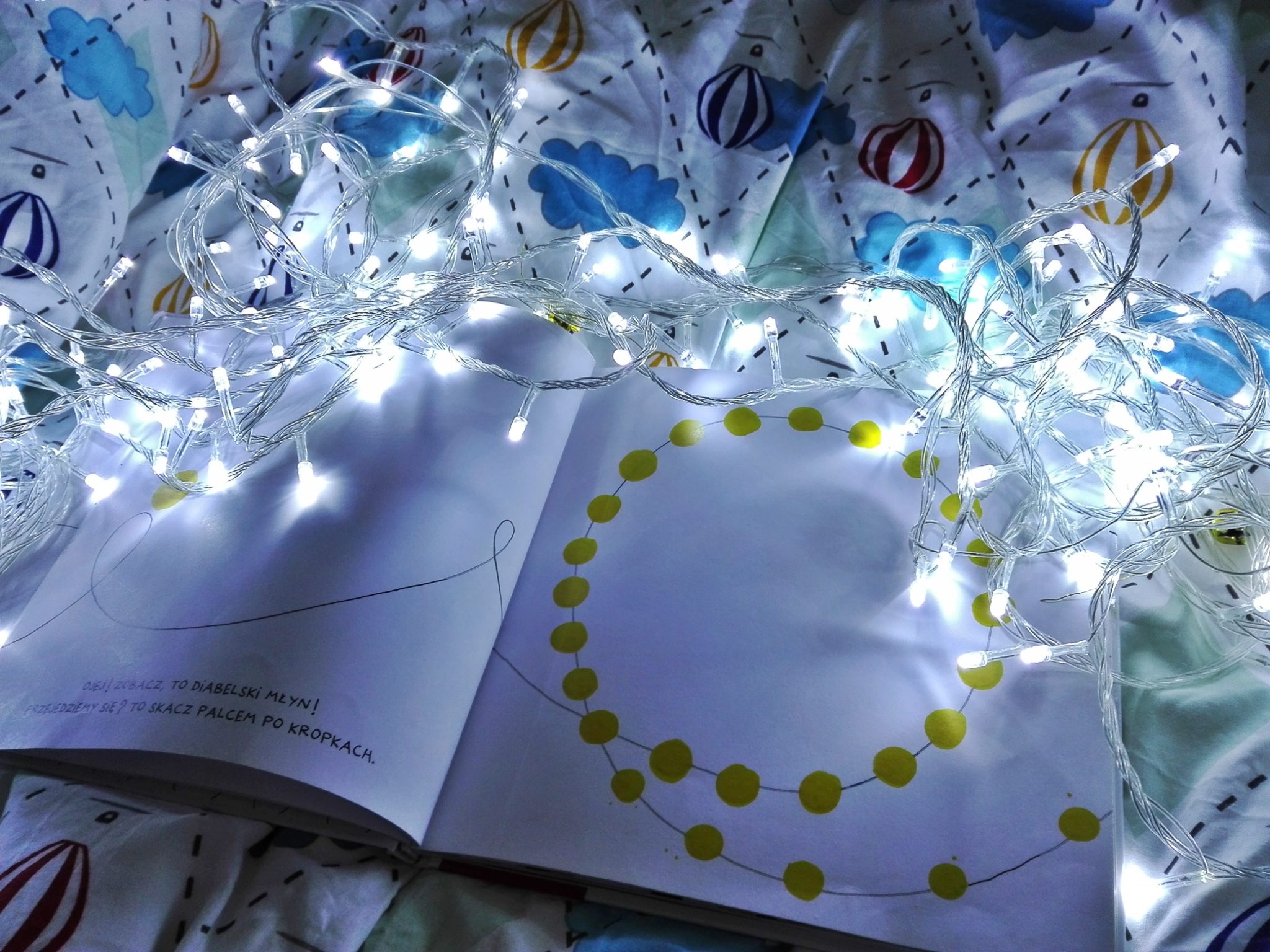 Jak sami widzicie, większość z tych pozycji to książki typowo aktywizujące. Bez względu na to, który już raz z kolei Kuba sięga po którąś z nich – zadania Hervé Tullet’a zawsze wywołują u niego ogromny uśmiech. Na jednym ze zdjęć widać doskonale, że nasze „Naciśnij mnie” jest już bardzo po przejściach (przed chwilą kleiłam taśmą brzegi okładki) – to była pierwsze książka tego autora, którą Kuba trzymał w rękach jakieś trzy lata temu. Z niecierpliwością czekam na kolejne przekłady pozycji Tulleta na język polski.
