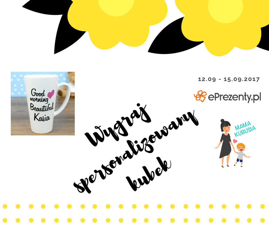 Mam też niespodziankę dla Was! Wystarczy, że w komentarzu pod tym wpisem wkleicie link do wybranego przez Was prezentu i powiecie, dlaczego akurat on przypadł Wam do gustu i komu byście go podarowali. Pamiętajcie, aby podpisać się imieniem i nazwiskiem. I tradycyjnie już – konkurs skierowany jest wyłącznie do osób, które lubią fan page Mamy Kubusia i ePrezenty! ;) Nagrodą jest kubek z własnym nadrukiem, możecie zobaczyć go TUTAJ. Bawimy się do piątku, 15 września do północy! ;)