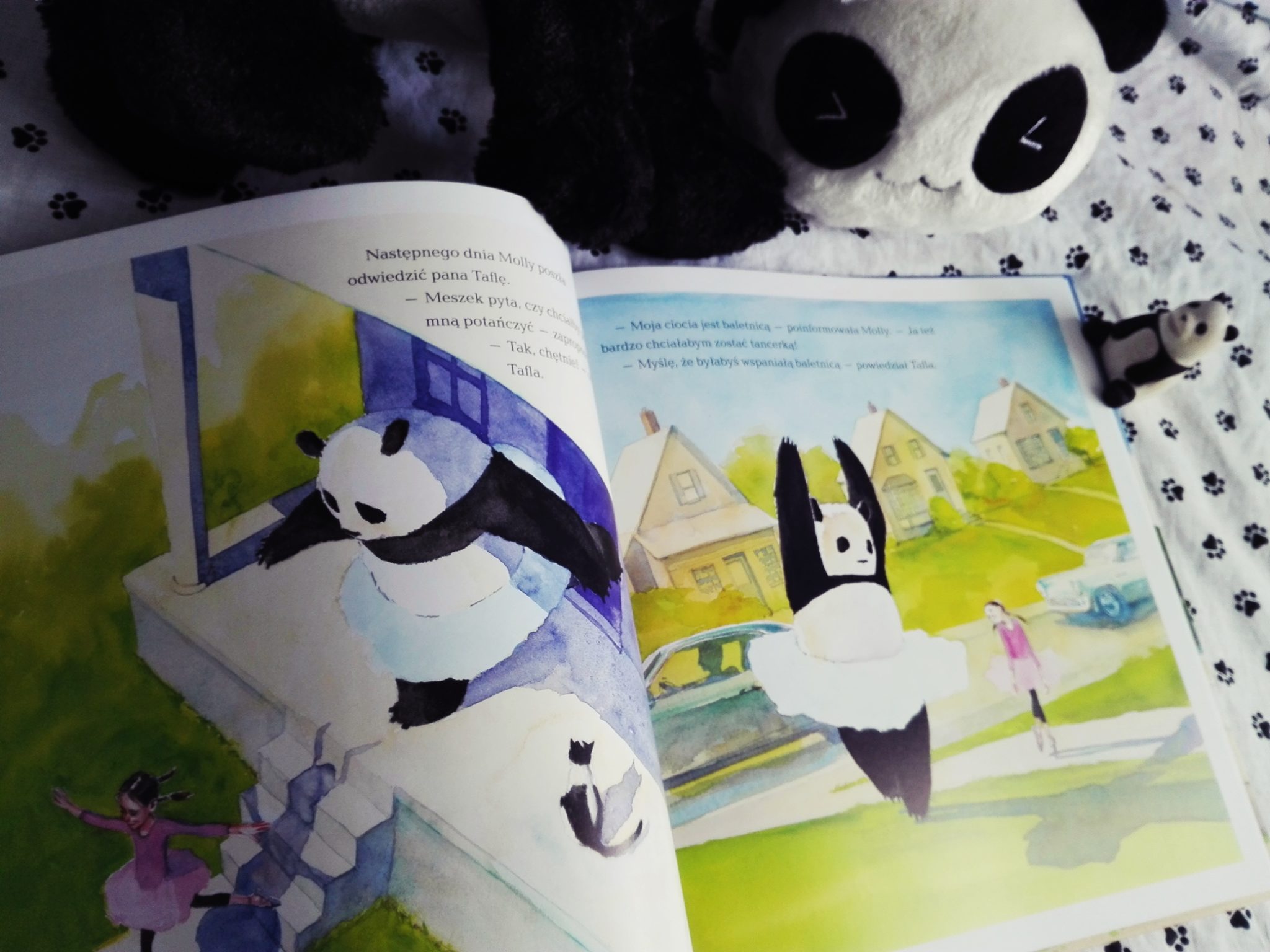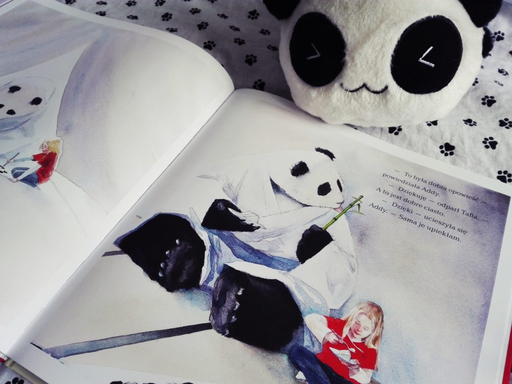 Mimo tego, że ta książka ma zaledwie czterdzieści stron – jest zupełnie wyjątkowa. Pewnego dnia sąsiadem dzieciaków zostaje wielka panda o imieniu Tafla. Każdemu z trójki maluchów opowiada ona wyjątkowe opowieści, a całość zostaje dodatkowo ujęta w cudowne, akwarelowe rysunki. Rabuś obdarowany przez biedaka, mnich z trudną przeszłością i rolnik świadomy tego, że pech i szczęście trudno rozłączyć – te opowieści płynące z ust olbrzymiej pandy zawierają naprawdę ciekawe morały.