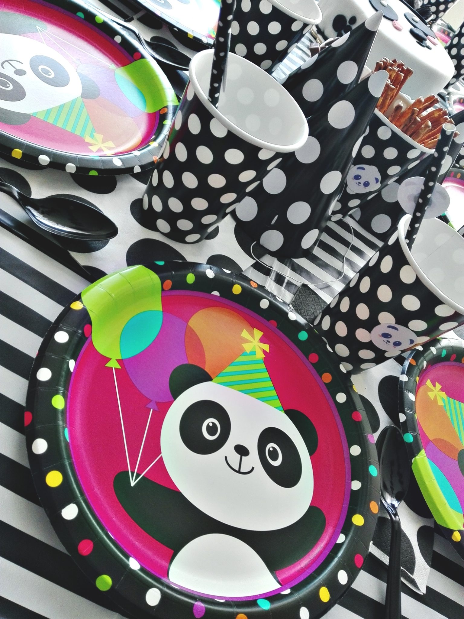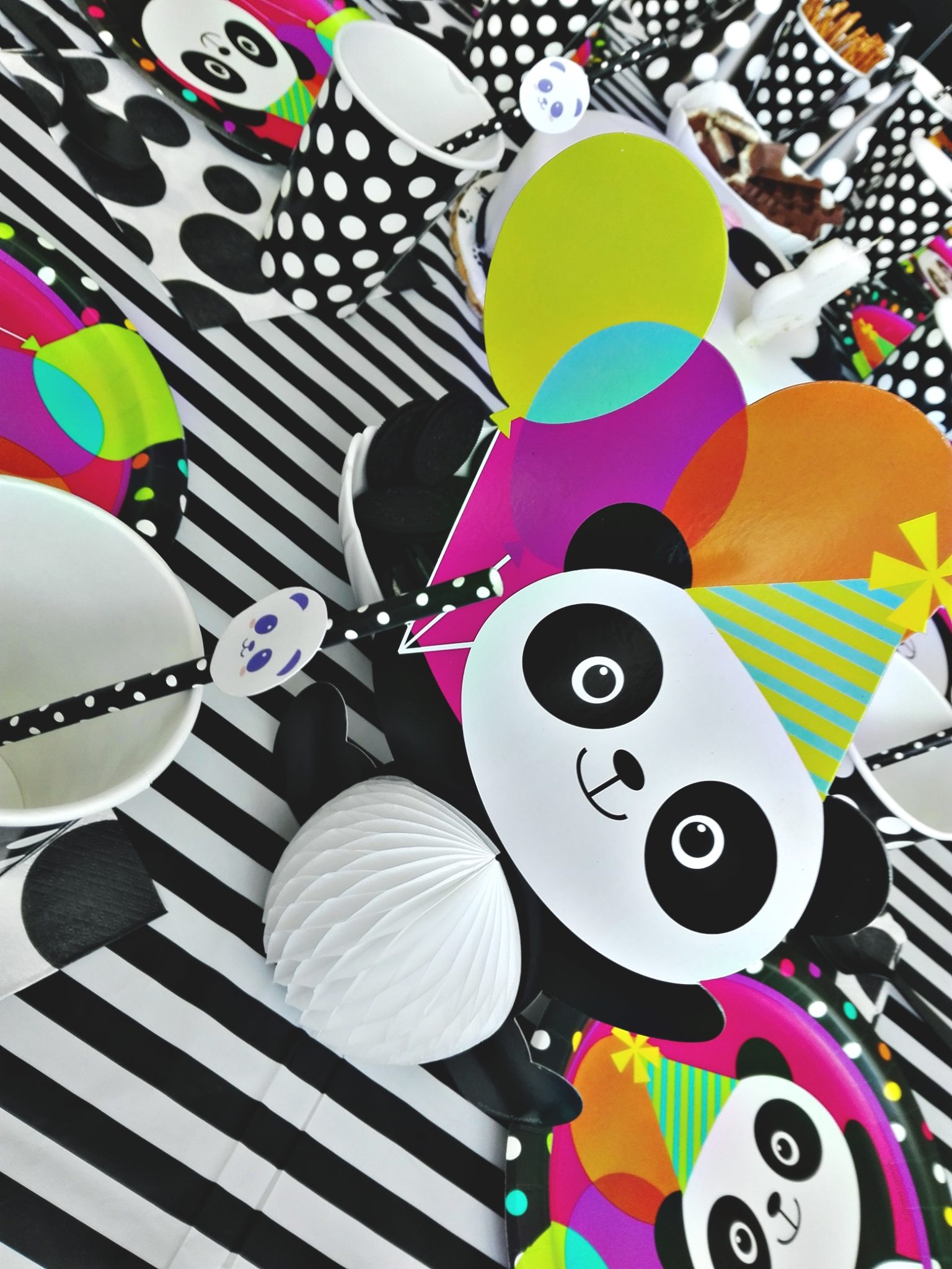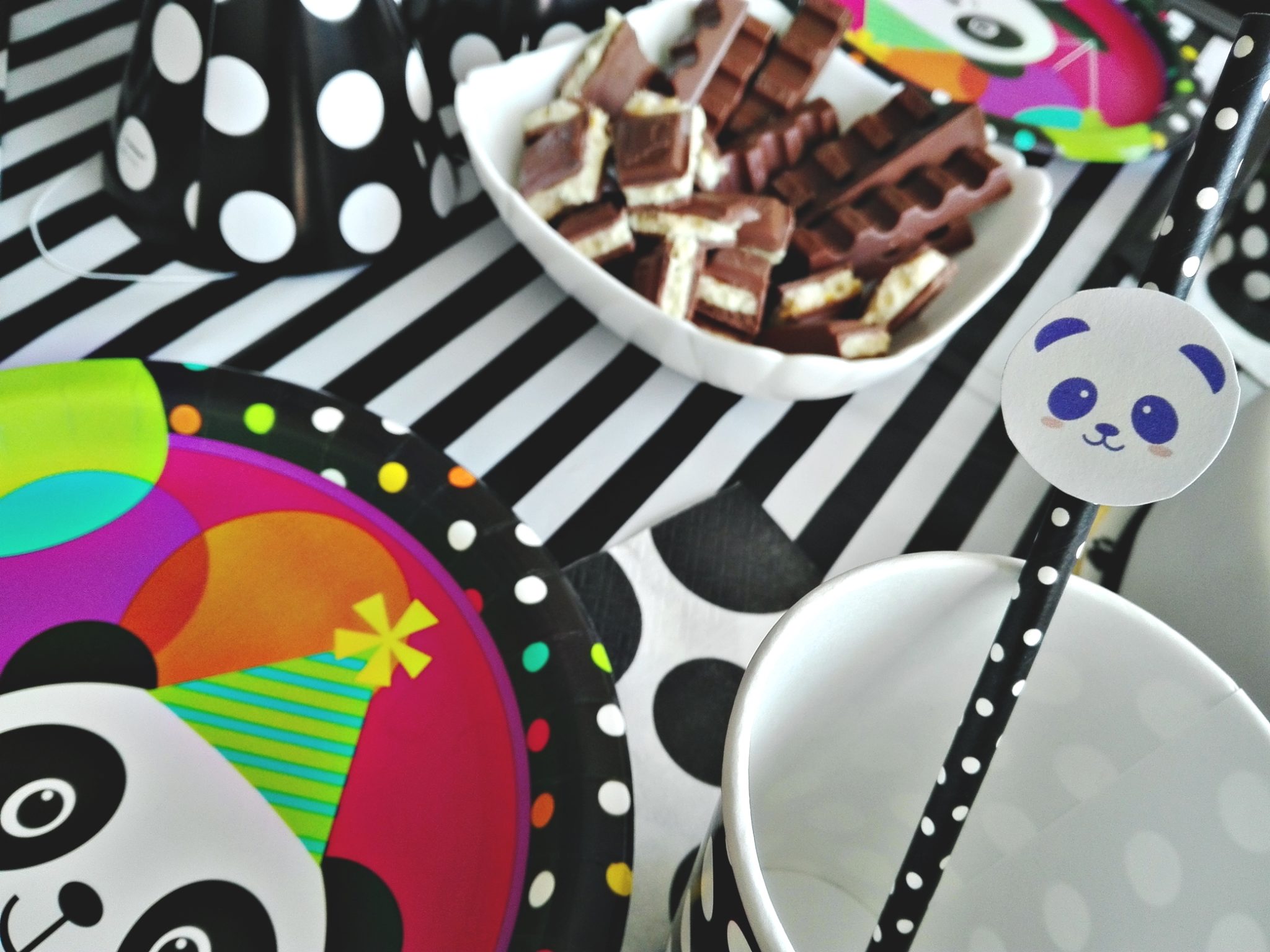 Wszystkie dekoracje (poza pandami na słomkach i literkami), jakie zobaczycie na poniższych zdjęciach pochodzą ze sklepu internetowego PartyBox.pl. Jest to chyba najbardziej wyposażony sklep internetowy – znalazłam tam wszystko, czego potrzebowałam.