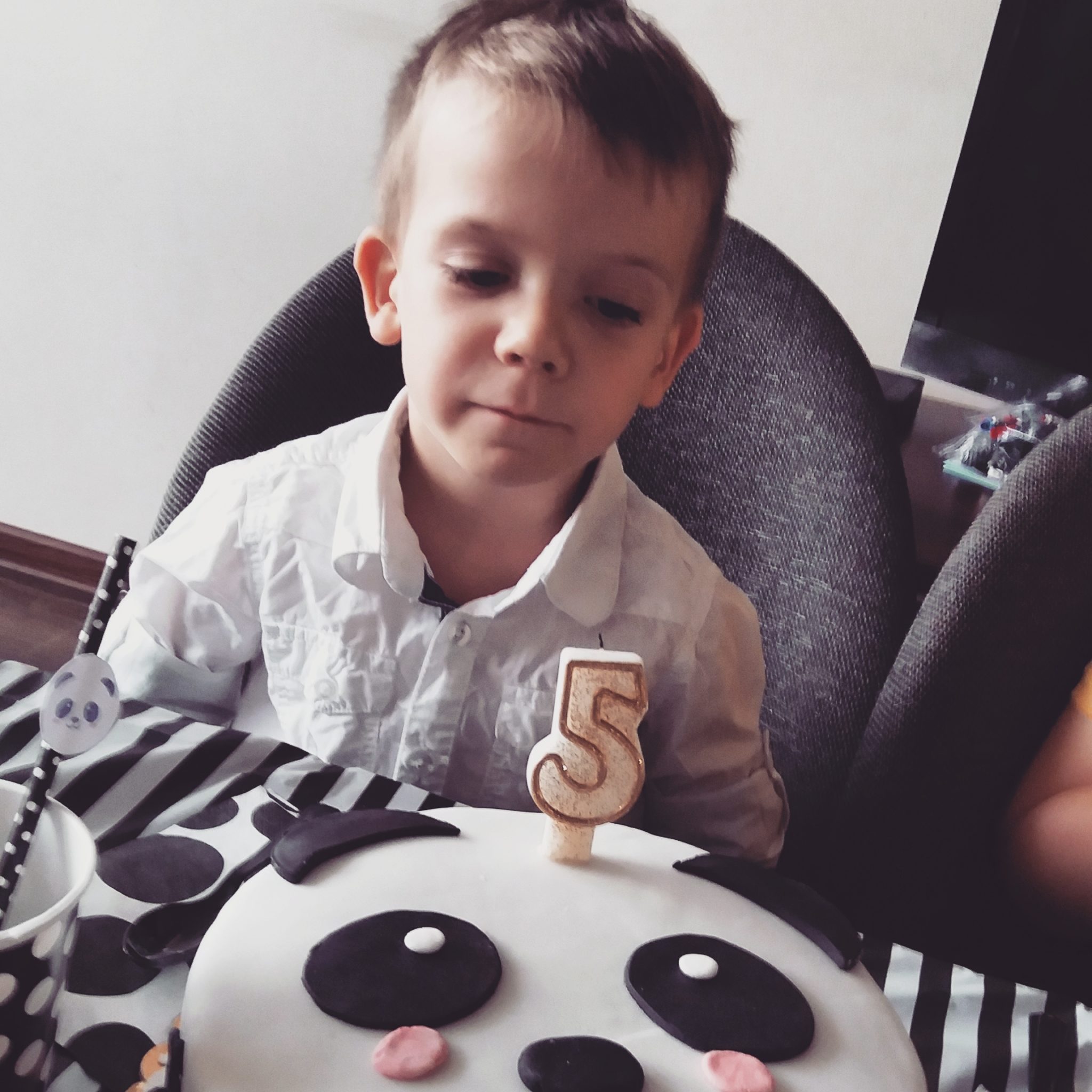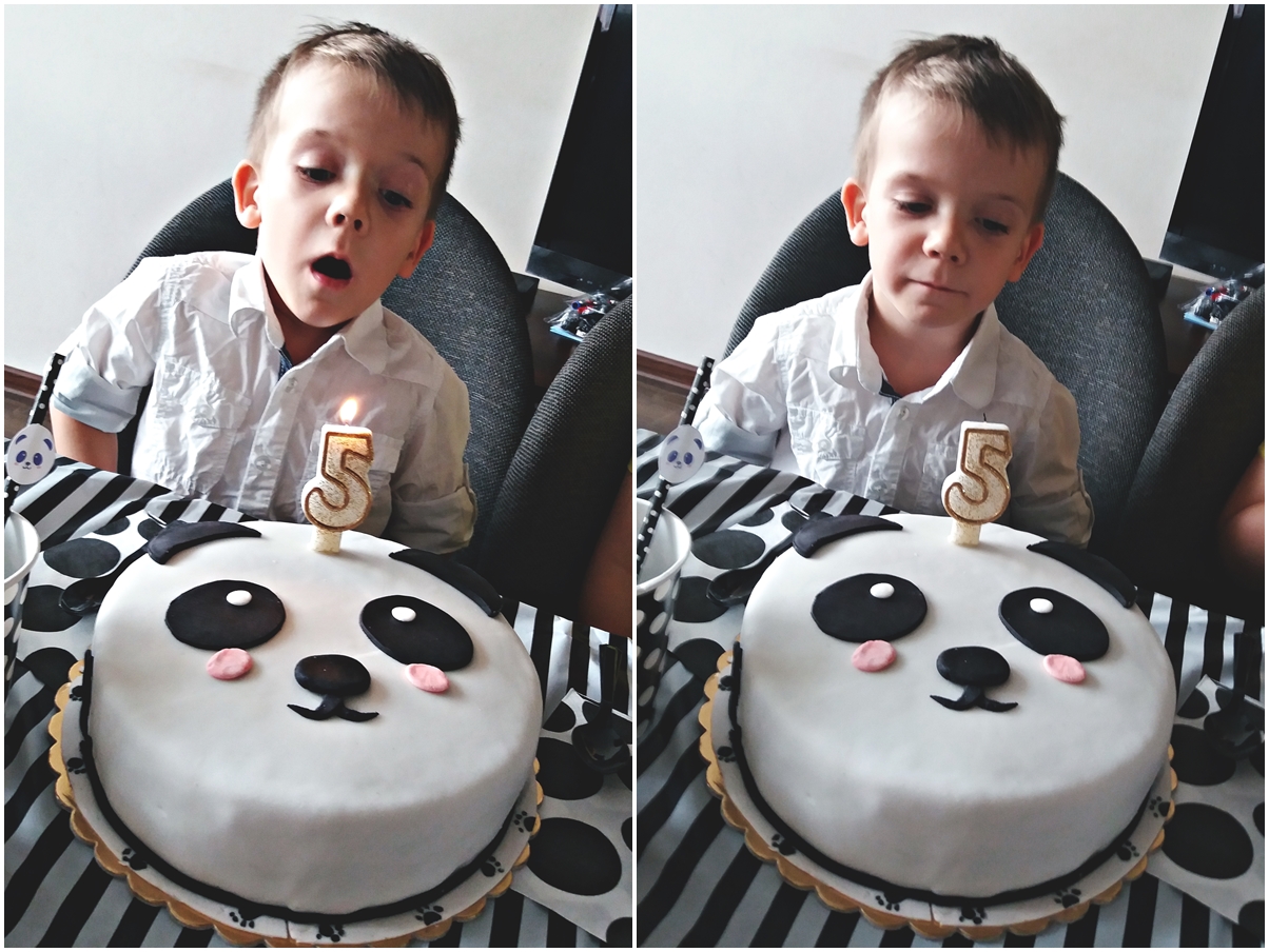 Mimo choróbska zadowolony bardzo. Cały dzień śpiewał różne piosenki o swoich urodzinach, a kiedy wieczorem kładliśmy się spać mówił o tym, że szkoda, że urodziny się skończyły i że za rok również mają być z motywem pandy. ;)