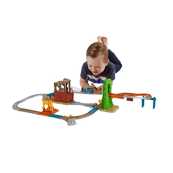 Tomek i Przyjaciele: Zestaw ucieczka ze złomowiska (FBK08) – Zestaw torów Ucieczka ze złomowiska z serii TrackMaster™ przeniesie fanów Tomka do świata zainspirowanego najnowszym filmem „Podróż poza wyspę Sodor”. Dzieci ponownie będą mogły przeżyć zapierające dech w piersiach przygody, tym razem odgrywając w nich główną rolę. Podczas zabawy czeka na dzieci dużo niespodziewanych zwrotów akcji. Gdy Tomek ruszy po torach, pędząc w stronę pokrytej mchem bramy, okaże się, że tuż za nią czeka przepaść! Na szczęście w ostatniej chwili lokomotywka uruchamia przycisk, który opuszcza liny pozwalające Tomkowi bezpiecznie przedostać się na drugą stronę. Gdy bohater przejedzie przez szopę na złomowisku, a wielka zębatka wpadnie do jego wagonika towarowego, okaże się, że Tomek znów jest w niebezpieczeństwie! Fragment torów zapadł się, za chwilę może dojść do wypadku! Na szczęście w ostatniej chwili spod szopy wyrasta wzgórze, po którym nasz bohater bezpiecznie zjeżdża w dół. Już tylko ostatnia prosta dzieli lokomotywkę od wykonania zadania! Po przejechaniu pod mechanicznym ramieniem, które wyjmuje zębatkę z wagonika towarowego i opuszcza ją na uchwyt towarowy, Tomek kończy swoją przygodę. Teraz tylko od dziecka zależy, czy przy kolejnym okrążeniu historia się powtórzy, czy mali konduktorzy zmienią jej bieg, kierując się własną wyobraźnią. Zestaw łączy się z innymi produktami z serii TrackMaster™ dzięki czemu dziecko może swobodnie rozbudowywać świat przygód Tomka i jego przyjaciół.