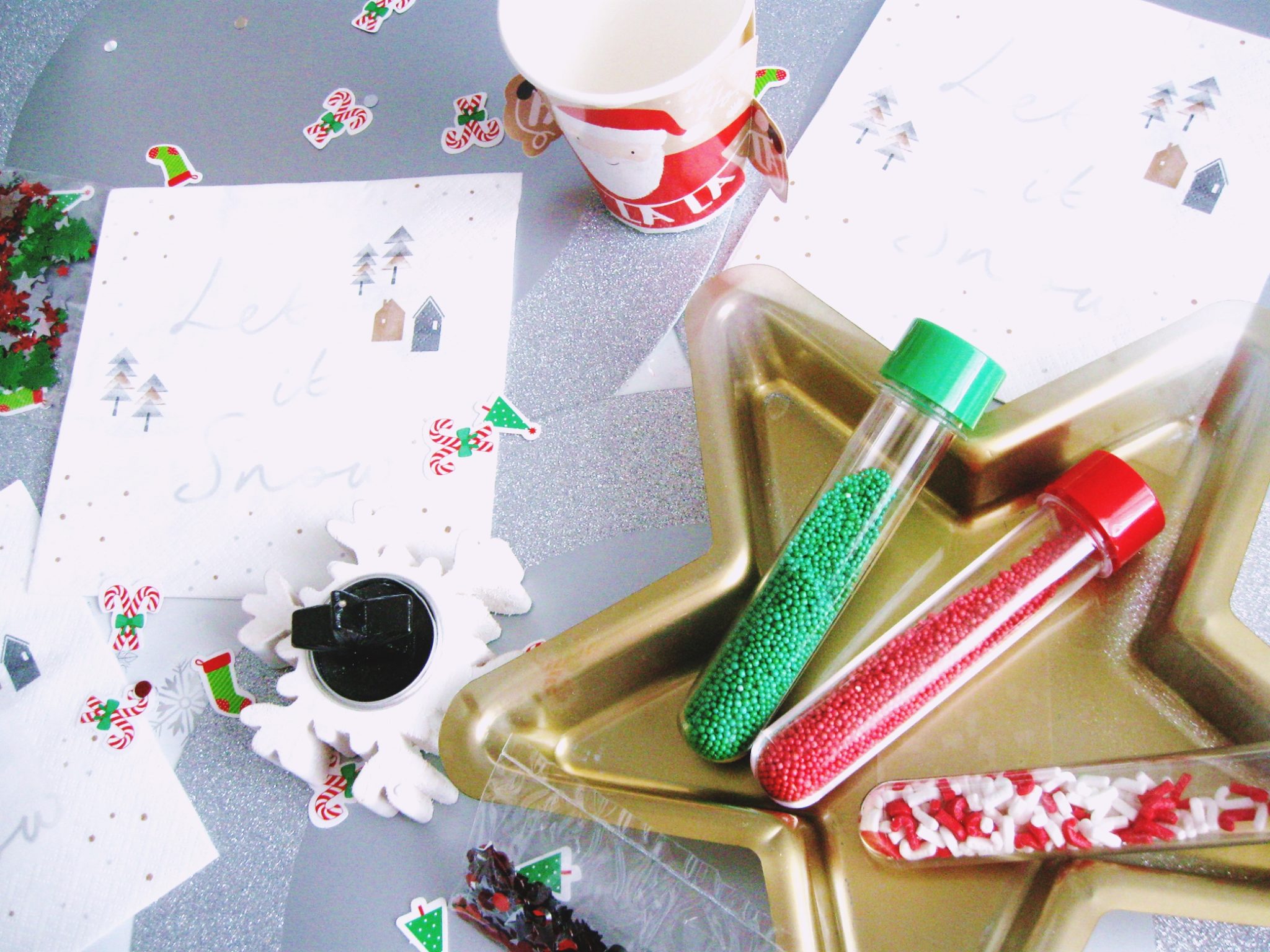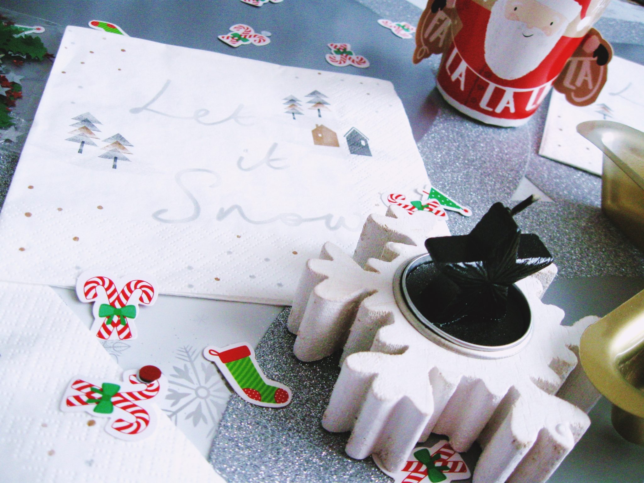 Przyznaję się bez bicia – częściej pakuję prezenty, niż je dostaję, a szczególnie w okresie świątecznym. I niestety tak to już ze mną jest, że bardzo dbam o to, aby pakowane przeze mnie prezenty miały nie tylko fajną zawartość, ale i by samo opakowanie ładnie się prezentowało. Obecnie w PartyBox znajdziecie całą masę papierów, wstążek, naklejek i bilecików do prezentów. Wszystkie są tak urocze, że naprawdę ciężko mi było wybierać. Ostatecznie jednak zdecydowałam się na czarne papiery, po których można pisać załączoną kredą (klik). Z kolei wśród bilecików i wstążek, moje typy to: Przytulne Święta, Christmas Metallics, Święta i złoty zestaw do pakowania. Do dekoracji stołu wybrałam obrus w śnieżynki, serwetki i świecznik z serii NORDIC, kubeczki Mikołaj i Przyjaciele, srebrne podkładki z linii SPARKLE i tacę do serwowania w kształcie gwiazdki w kolorze złotym. Wszystkie świąteczne zdjęcia nabiorą magii dzięki konfetti Christmas Time, a pierniczki udekorowaliśmy przy pomocy zestawu posypek cukrowych Święta (niebawem pokażę Wam je wraz z przepisem, gdzie ciasto miksujemy, a nie ugniatamy!)