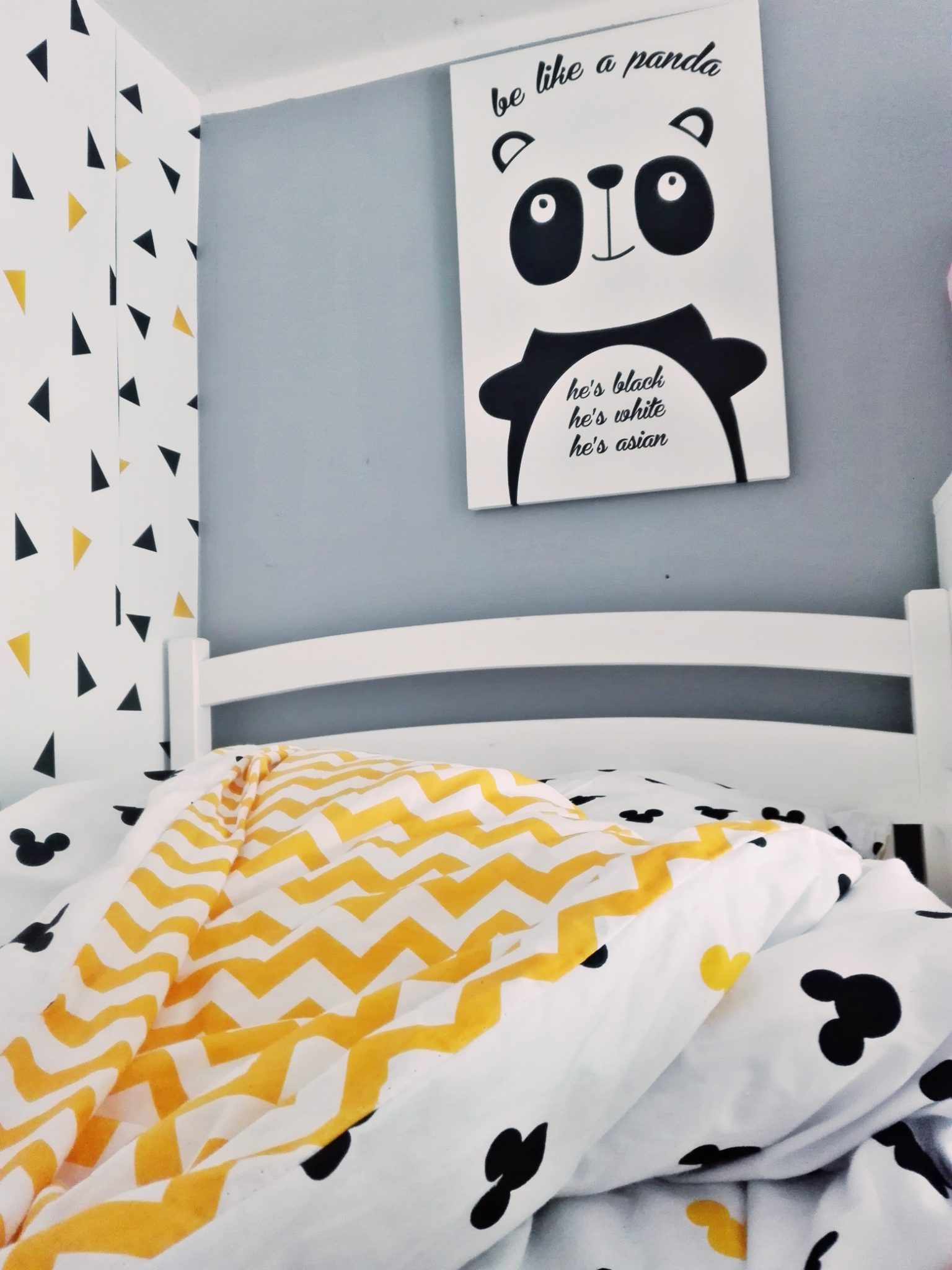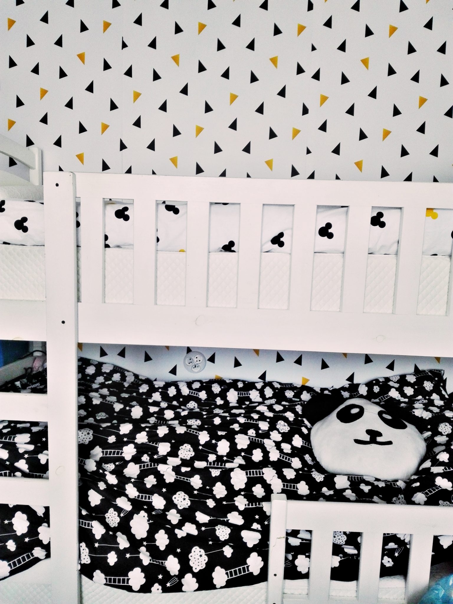 Całość prezentuje się bardzo fajnie i kontrastowo, szczególnie przy naszej fototapecie i białym łóżku. Materiały, na których pracowałam pochodzą ze sklepu eTasiemka.net, którego różnorodny asortyment z pewnością Was zaskoczy!