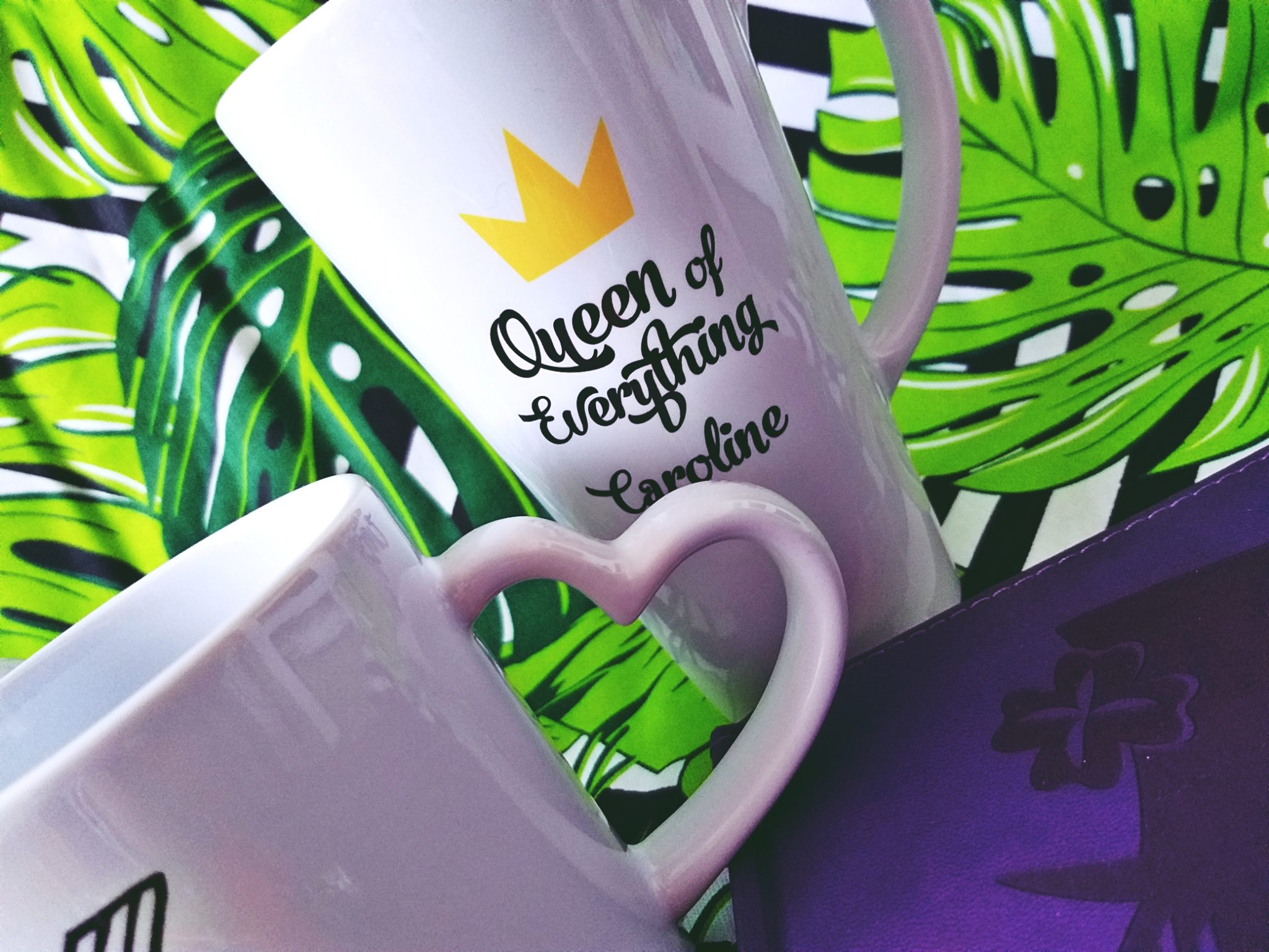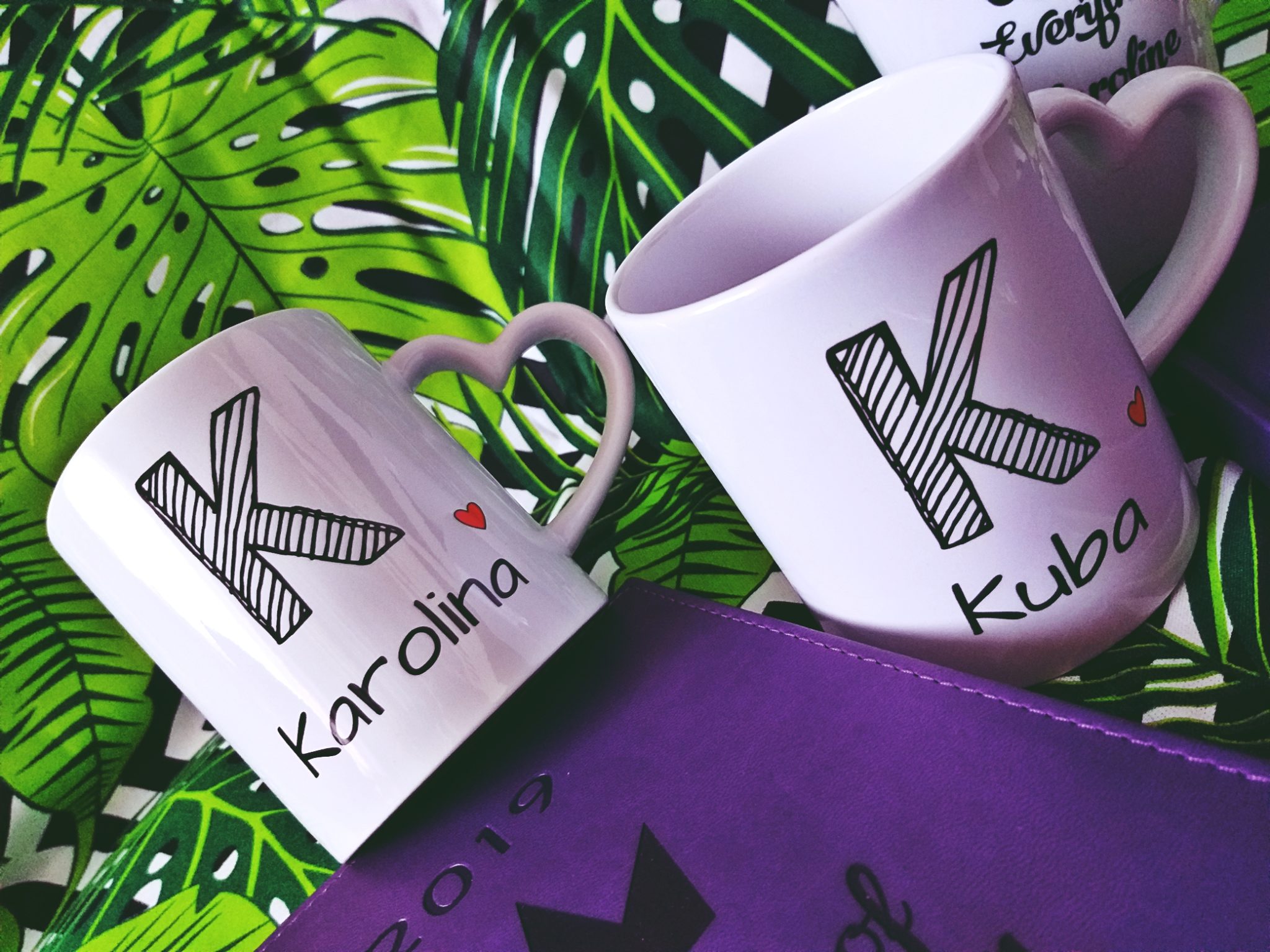Pierwszy kubek rzucił mi się w oczy ze względu na ten sam napis, jaki wybrałam dla swojego kalendarza. Jego ogromnym plusem jest fakt, że jest ogromny, dzięki czemu poranna kawa nabierze dla mnie nowego wymiaru. Kubki z inicjałami są teoretycznie kubkami dla par, ale postanowiłam to nieco zaczarować i zrobić z tego kubki dla mamy i dziecka. Moje serce od razu skradły te cudowne uchwyty w kształcie serca – i ku mojej radości spodobały się one również Kubie. Nawet nie wyobrażacie sobie jego domu z tego, że ma kubek prawie taki sam, jak mama!