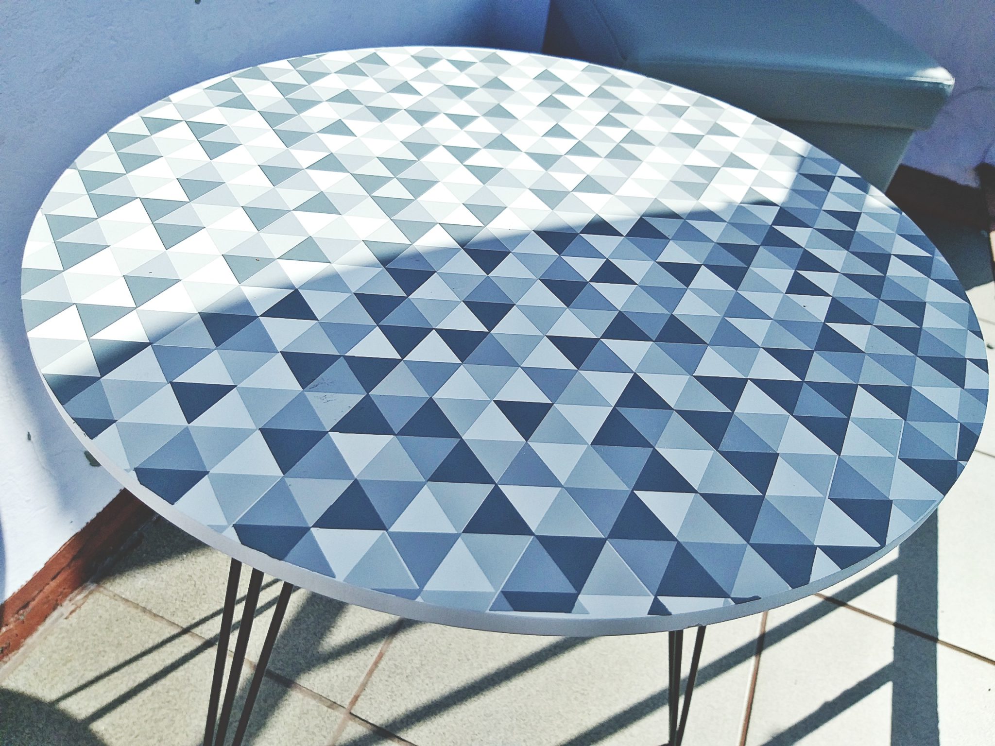 Kiedy pierwszy raz zobaczyłam ten stolik – od razu przepadłam, ponieważ całkowicie różnił się od tych, które wcześniej przeglądałam. Okrągły blat ze świetnym wzorem i designerskimi nóżkami skradł moje serce, a co najważniejsze – jego wymiary okazały się być wręcz idealne dla mojego małego balkonu. Zmieści się na nim zarówno mój laptop, jak i notes z kubkiem kawy, więc czego chcieć więcej? Atutem tego stolika są również wykręcane nóżki, w efekcie czego po złożeniu zajmuje naprawdę niewiele miejsca i nie będę miała żadnych problemów z przechowywaniem go zimą. Z racji tego, że jest wysoki na 45 cm zrezygnowałam z krzeseł i postawiłam na coś bardziej funkcjonalnego – dwie składane pufy. Okazały się one strzałem w dziesiątkę, ponieważ nie dość, że nie zajmują wiele miejsca to dodatkowo mogę w nich przechowywać różne rzeczy, jak na przykład plażowe zabawki Kuby.