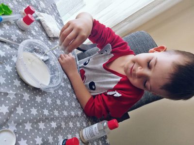 Znudzeni nieco tradycyjną ciastoliną spróbowaliśmy z Kubą naszych sił w stworzeniu własnych glutożelków, oraz innych